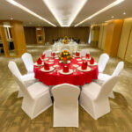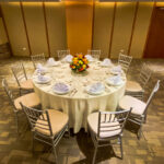 Ideal for formal dining events, wedding receptions, and gala dinners, the Banquet setup features elegantly arranged round tables