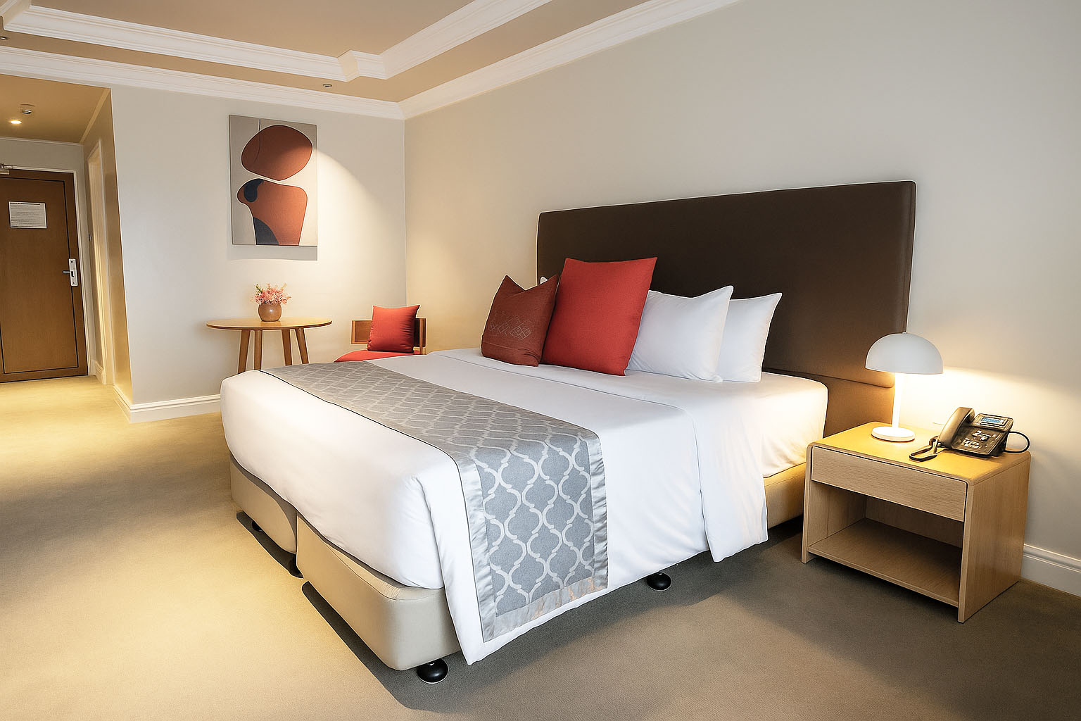 Experience refined comfort in the Vermillion Hotel Studio Suite. Spanning a generous 42 sqm, this sanctuary is designed for travelers who value both privacy and relaxation. Unwind in a plush king bed or curl up on the inviting sofa bed with your favorite book after a day of adventure.